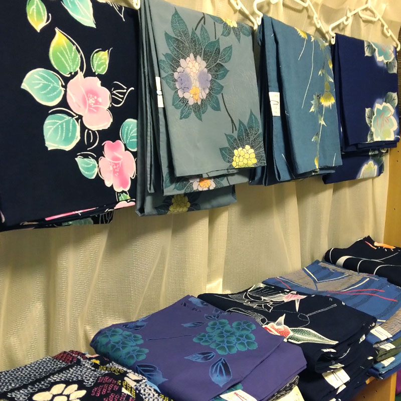 店頭と、店内中央に浴衣を陳列しております。